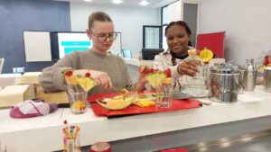Am 01.04.25 fand unser Cocktailseminar in Kooperation mit der BGN statt. Die Schülerinnen und Schüler der Restaurant- und Veranstaltungsklasse im 3. Ausbildungsjahr absolvierten dieses Seminar unter der Leitung von Herrn Türkmen (Mitglied der Deutschen Barkeeper-Union). Nach einer kurzen theoretischen Einführung wurden Bargeräte und Mixtechniken vorgestellt. Im Anschluss daran gab es eine kleine Garniturkunde, bei der die Schüler die erste praktische Übung absolvieren konnten. Danach wurden nach Anleitung verschiedene alkoholfreie Cocktails mit dem Shaker gemixt. Am Ende des Seminars durfte jeder Teilnehmer einen fachgerechten Cocktail am Gästetisch zubereiten. Alle Azubis erhielten von Herrn Türkmen ein persönliches Feedback.