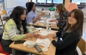 Heute sind die Schüler aus dem Gastronomiebereich mit eingebunden. Sie haben Chilli con Carne gekocht, was als Mittagessen angeboten wird. Auch der Erlös fließt in die Spenden mit ein, genau wie der Verkauf der selbstgebackenen Kuchen der Friseure. Im neuen Frisierraum haben in vier Reihen Schüler und Modelle Platz genommen, um das Frisieren in der Praxis zu üben. Auch Waschbecken, wie man sie aus den Salons kennt, sind vorhanden. „Durch die gute Ausstattung üben die Schüler viele Sachen, die im Betrieb nicht möglich sind“, weiß Carola Straus, stellvertretende Schulleiterin. „Außerdem versuchen wir, über die Berufsfachschule eins das Fach Körperpflege aufzubauen. Damit erwerben die Schüler fachliche Vorbildung und sind reifer, bevor sie zu uns kommen.“ Dass der Fachkräftemangel enorm ist, spürt die Schule deutlich. „Schüler mit intensivem Förderbedarf werden aufgenommen, damit sie im praktischen Teil sehen, dass sie etwas können“, sagt Straus. Die Schulpflicht besteht zu 50 Prozent aus Praxis und 50 Prozent aus Theorie. Mangelnde Deutschkenntnisse sind dabei nicht unbedingt ein Hindernis, denn im Berufsvorbereitungsjahr, das auf die Berufsfachschule folgt, gibt es Sprachförderung, um die Schüler auch hier weiter zu bringen. „Es liegt uns viel daran, Interesse zu wecken und so Schüler in eine Ausbildung zu bringen“, sagt sie.