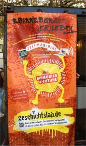 Mitmach Station 1 / Stimme verleihen: Passanten können im „Geschichtslab.de Container“ eine Stolperstein-Inschrift mit ihrer eigenen Stimme auf Tonband aufnehmen und so diesen Stolperstein auch hörbar machen. Damit wird hier zusätzlich auch akustisch an das Schicksal eines Opfers des nationalsozialistischen Terrors erinnert.