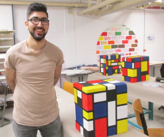 Unsere erste Projektarbeit in der Klasse BF 2 16a an der BBS Technik 2 in Ludwigshafen war das Bauen und Gestalten eines Hockers im Stil von Piet Mondrian. Die Aufgabe gliederte sich in mehrere Schwerpunkte: Zuerst beschäftigten wir uns mit dem Skizzieren und Planen, danach mit dem Bauen und Verspachteln und letztlich mit dem Bemalen und Fertigstellen des Werkstücks.