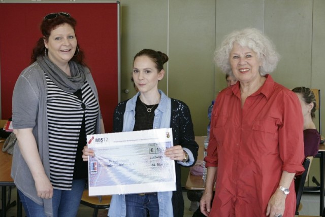 Ein besonderes Highlight war die Möglichkeit sich bunte Strähnen mit Haarkreide in die Haare machen zu lassen. Ganz besonders ein Trend zu Weihnachten und Silvester, da sich die Farbe am Abend ganz einfach herauswaschen lässt, wie die betreuende Lehrerin Frau Buhl-Wiesemann erklärte. Das eingenommene Geld dieser Aktion wurde an das Frauenhaus in Ludwigshafen gespendet. Die Scheckübergabe in Höhe von 1528 Euro fand am 24.05.2017 in der BBS Technik 2 statt.